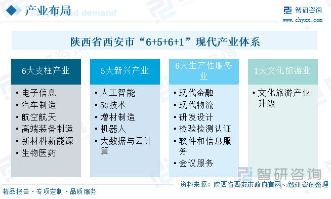 西安市做为国度主要的科技立异核心和西北地域的经济枢纽,近年来环绕“6+5+6+1”现代财产系统,沉点成长六大支柱财产、五大新兴财产、六大出产性办事业和一个文化旅逛特色财产。通过财产链的延长和优化,西安市构成了以高新手艺财产为从导,涵盖先辈制制业、现代办事业和现代农业的多元化财产款式。